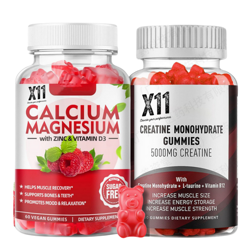 Complementing this bundle are our Sugar-Free Magnesium & Calcium Vegan Gummies, which deliver 600 mg of calcium, 300 mg of magnesium, and 400 mg of ashwagandha per serving. These gummies are not only delicious but also promote relaxation and stress relief while supplying your body with essential nutrients for optimal muscle function.