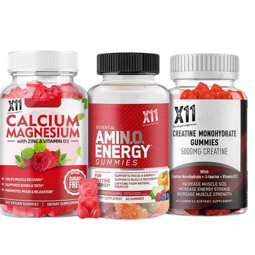 This 3 Pack Bundle is great for supporting muscle relaxation and nerve function, enhancing exercise performance and endurance, promoting muscle recovery and growth, and improving overall health and vitality. Elevate your wellness journey today with our 3 Pack Magnesium, Creatine & Essential Amino Acids Keto Gummies Bundle and experience the synergy of powerful ingredients for optimized physical performance!