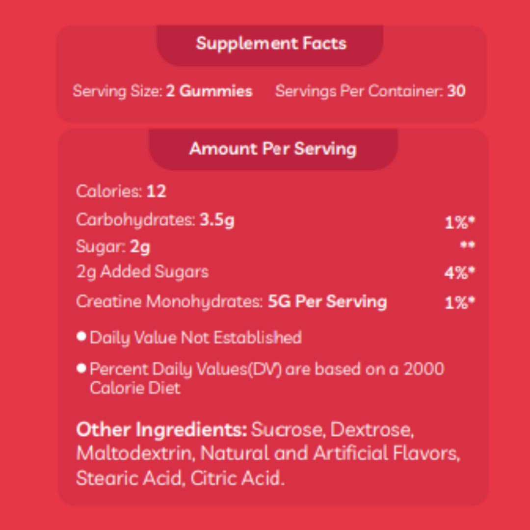 Vegan Creatine Monohydrate Gummies for Muscle Strength and Workout Recovery